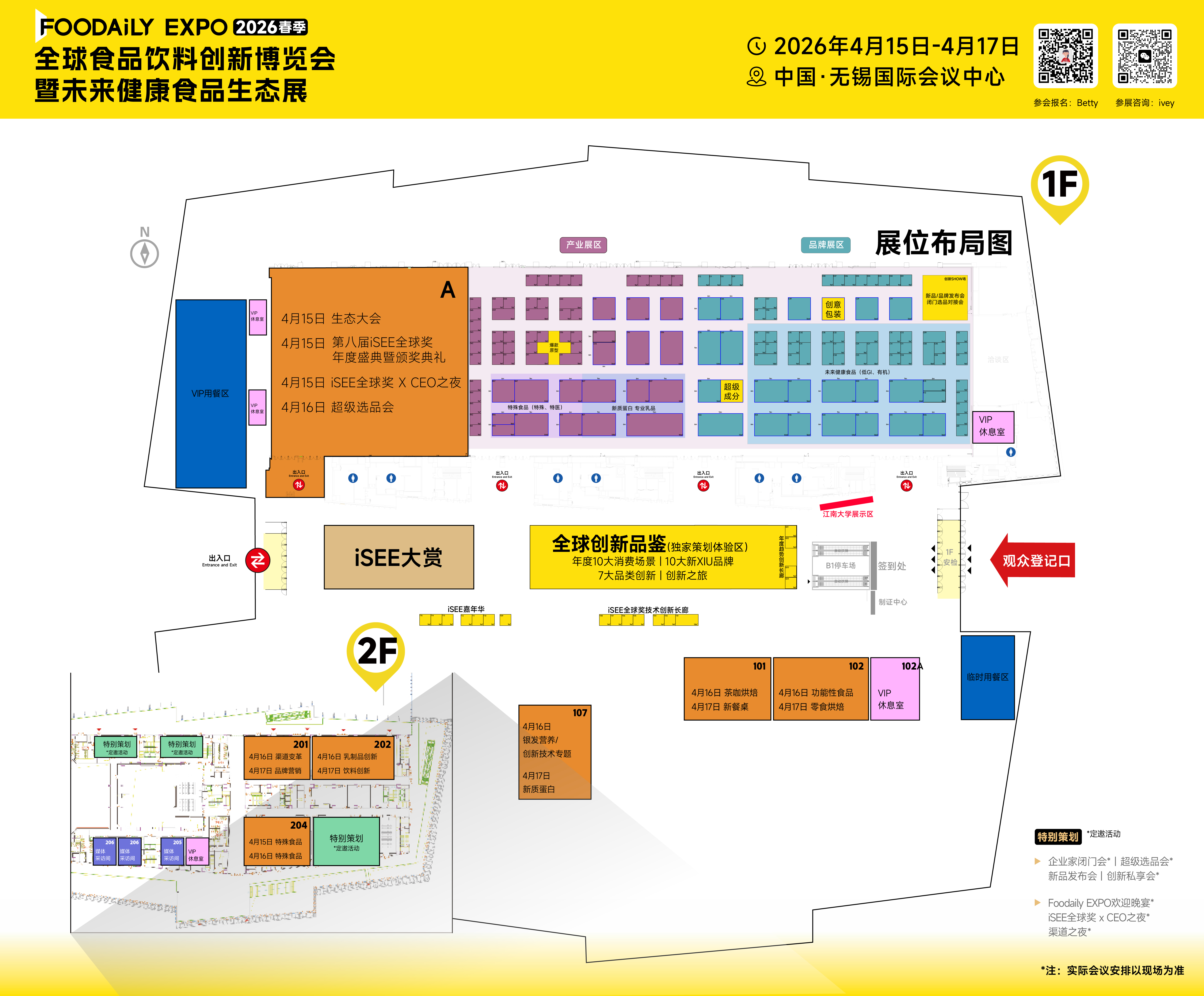 品牌展区:汇聚具有品类代表性和市场潜力的创新品牌,通过「新品发布会」「超级选品会」等新品首发和渠道对接活动,让好的产品直连渠道,加速市场突破。产业展区:汇聚标杆性解决方案伙伴,集中呈现未来健康食品的关键驱动力,同时引入合成生物、AI等产业关键变革力量,加速未来食品健康化创新落地。